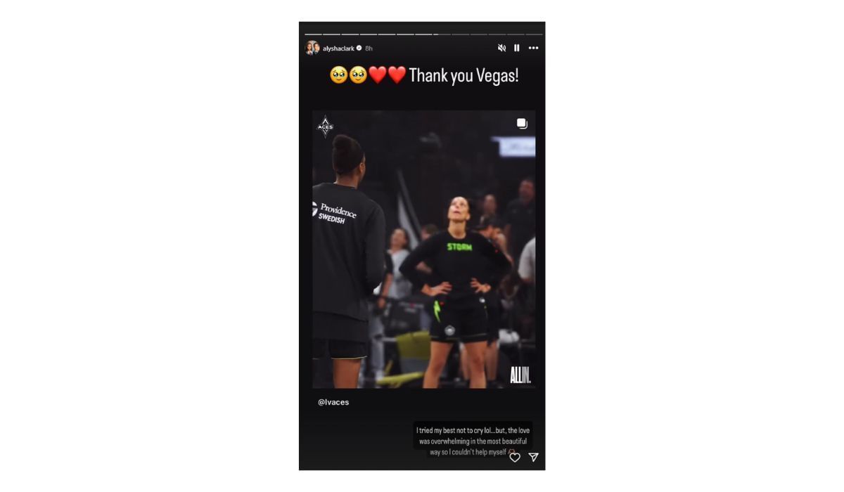 In what turned out to be an emotional night for Clark, the Aces welcomed her with a tribute video on the jumbotron. The video montage was heartwarming enough to make the three-time WNBA Champion struggle to hold back her tears.
