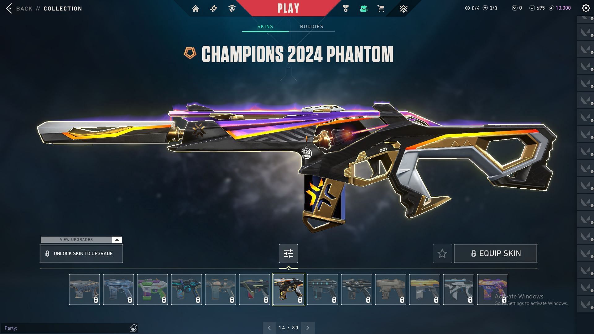 The Champions 2024 collection was part of the Valorant Champions 2024 event. An Exclusive edition collection released in July 2024, it features skins for the Phantom and Melee. The Phantom skin was priced at 2675 VP, and came in only one variant.