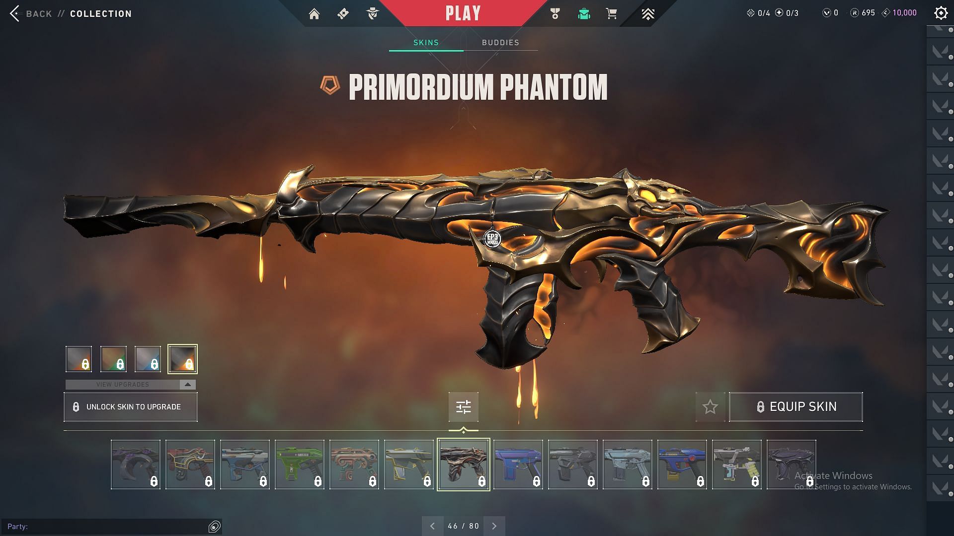 Primordium is an Exclusive edition collection that was released in March 2024. Apart from the Phantom, it features skins for the Vandal, Shorty, Melee, and Spectre. The gun skins cost 2175 VP each and are available in four variants — default, venom, cobalt, and gold.