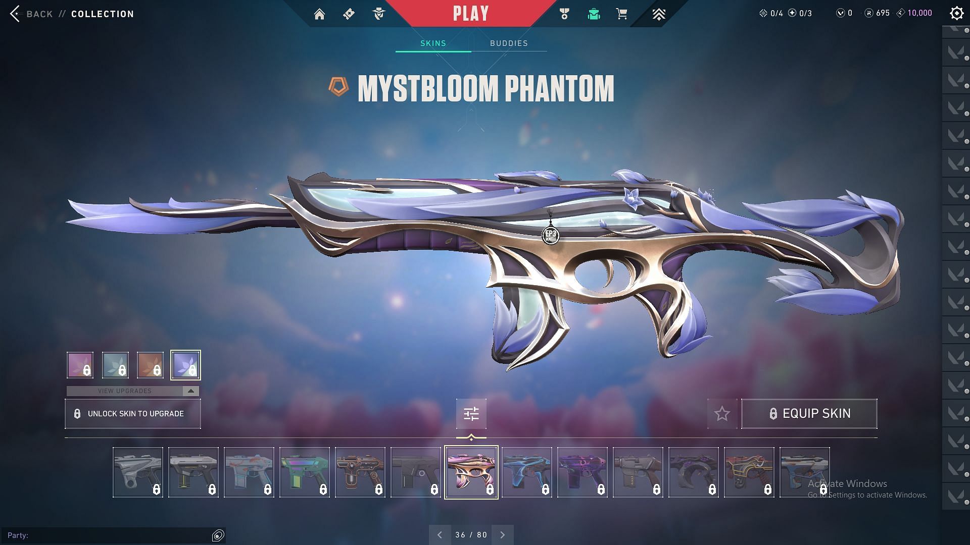 The Exclusive edition collection, Mystbloom, was released in April 2024. This bundle features skins for the Phantom, Operator, Sheriff, Judge, and Melee. Each gun skin costs 2175 VP and is available in four variants: default, blue, orange, and purple.
