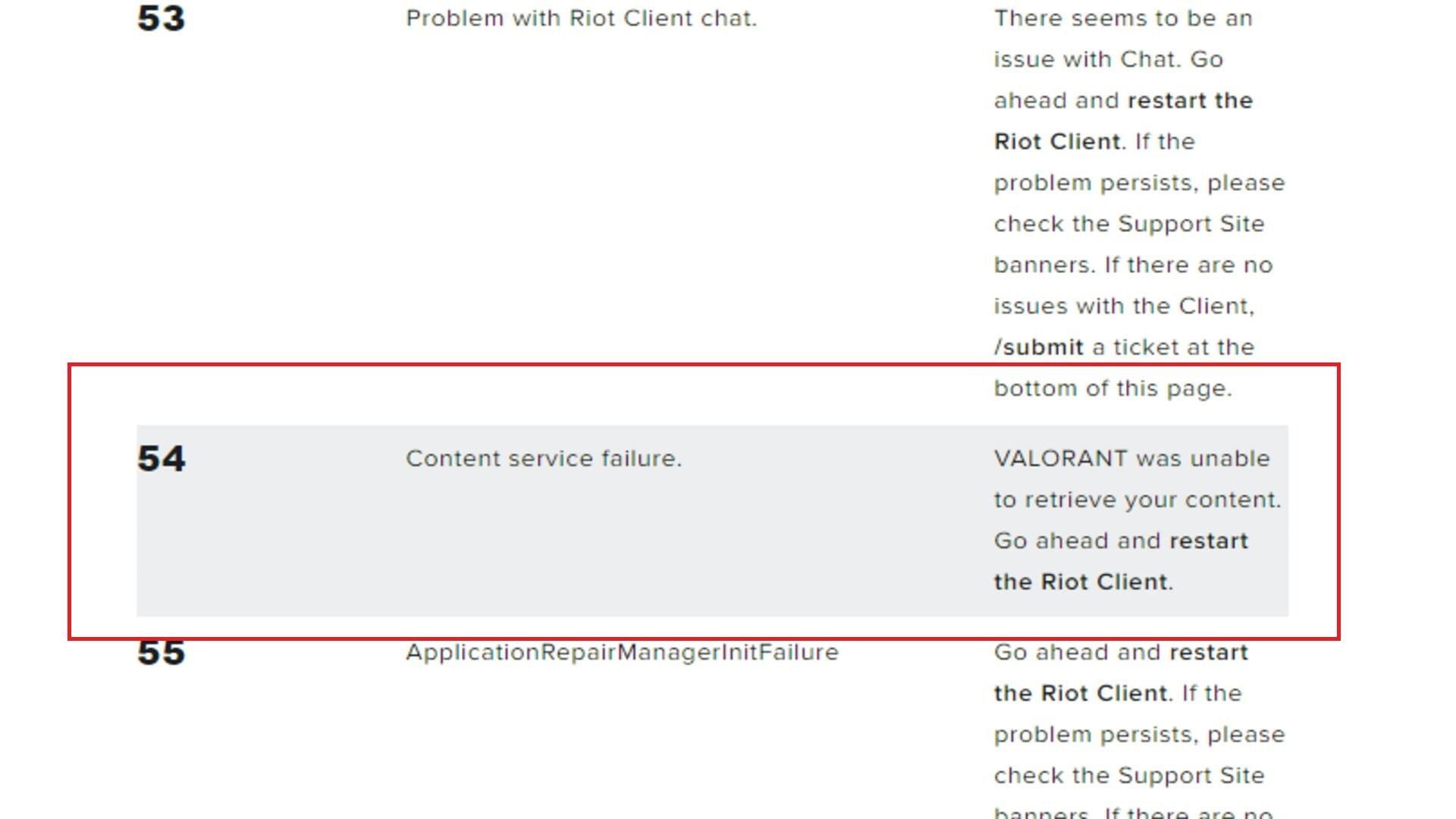 The Valorant error 54 indicates that the game was unable to retrieve content from the server. Riot officially terms this error as "Content Service Failure".