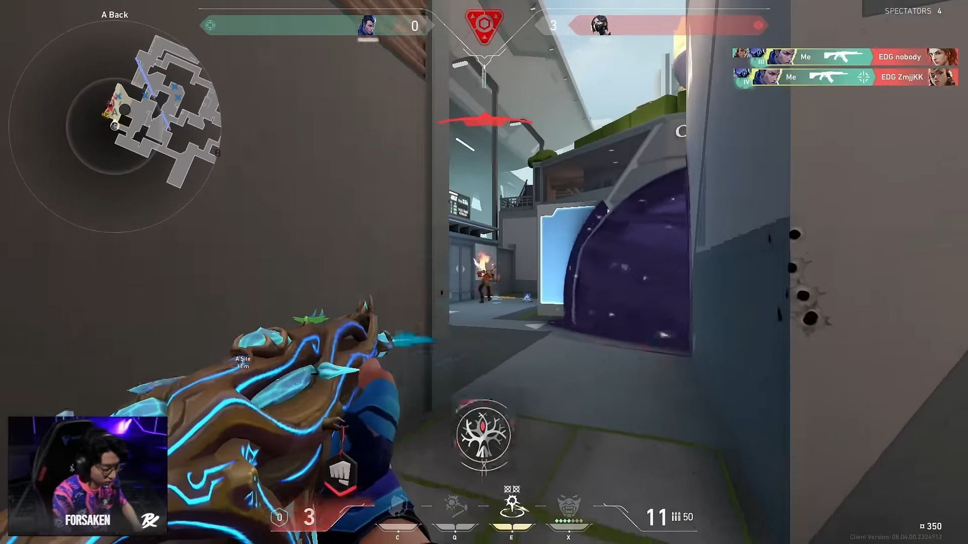One such composition saw f0rsakeN play Yoru against EDward Gaming on Split. In round four of Paper Rex's attacking half, four of their players got instantly killed while executing on the A site. This left f0rsakeN alone with just a Judge. Given the player advantage, EDG were fearless and two of them ended up pushing into f0rsakeN's Judge granting him free kills and a Vandal.