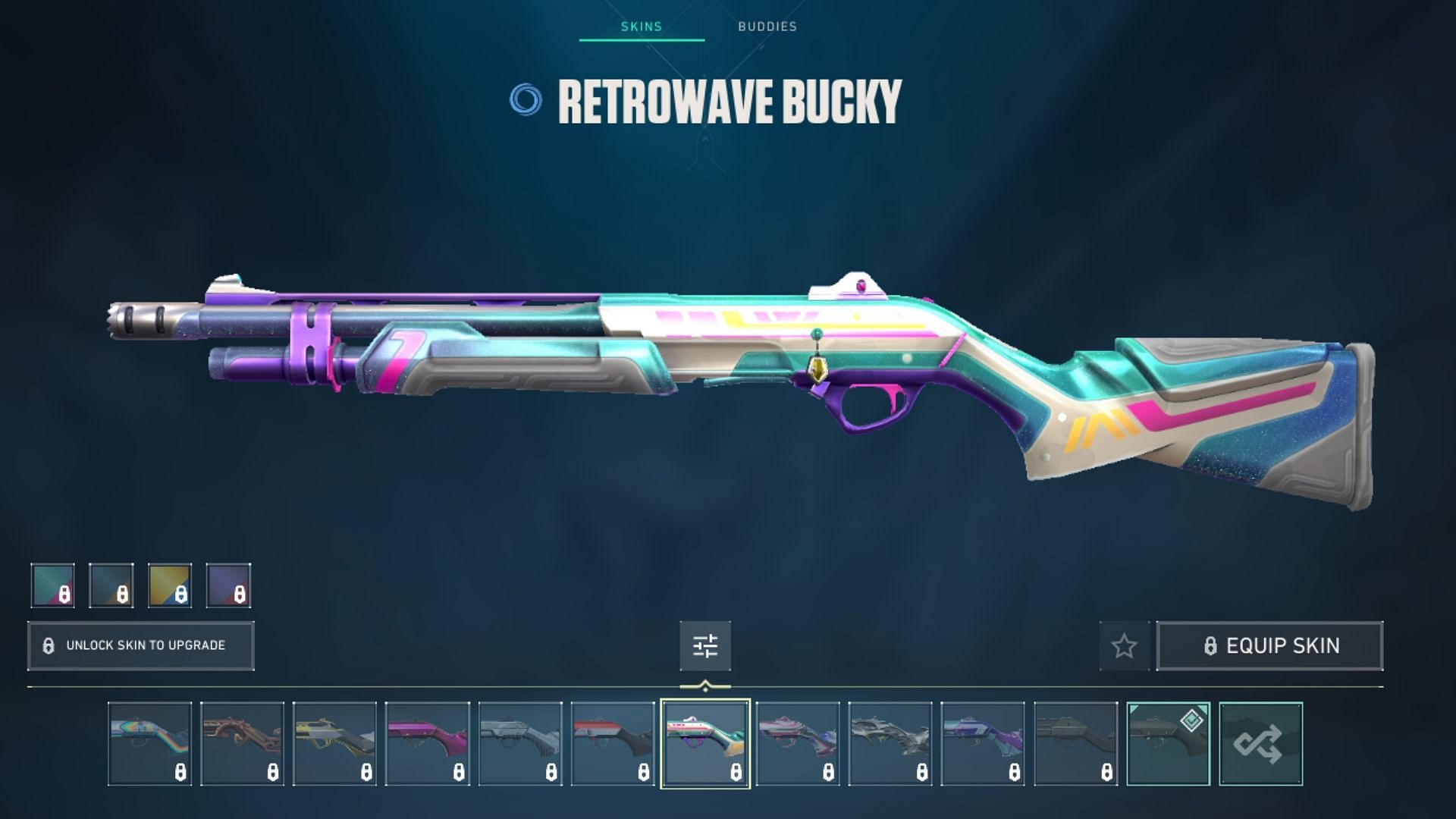 The Bucky is a shotgun that isn't used as much as a Vandal or Phantom in Valorant. This lack of popularity also means that there are fewer Bucky skins than Vandal or Melee knife skins. Skins belonging to the B tier may be static but are still visually attractive. Some of these skins also have variants that add to their appeal and separate them from the lower tiers to a certain extent. Many of these guns are from the battle pass including Lightwave and Retrowave.