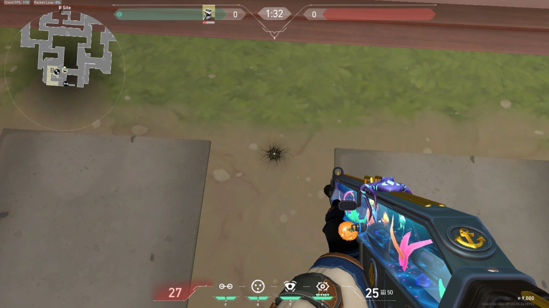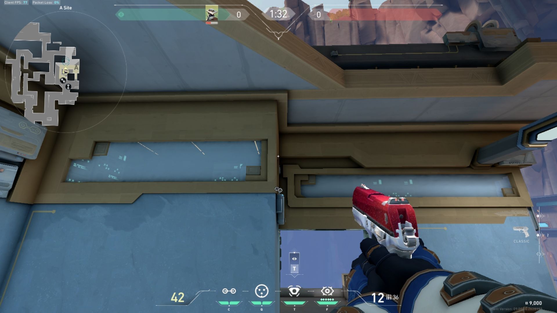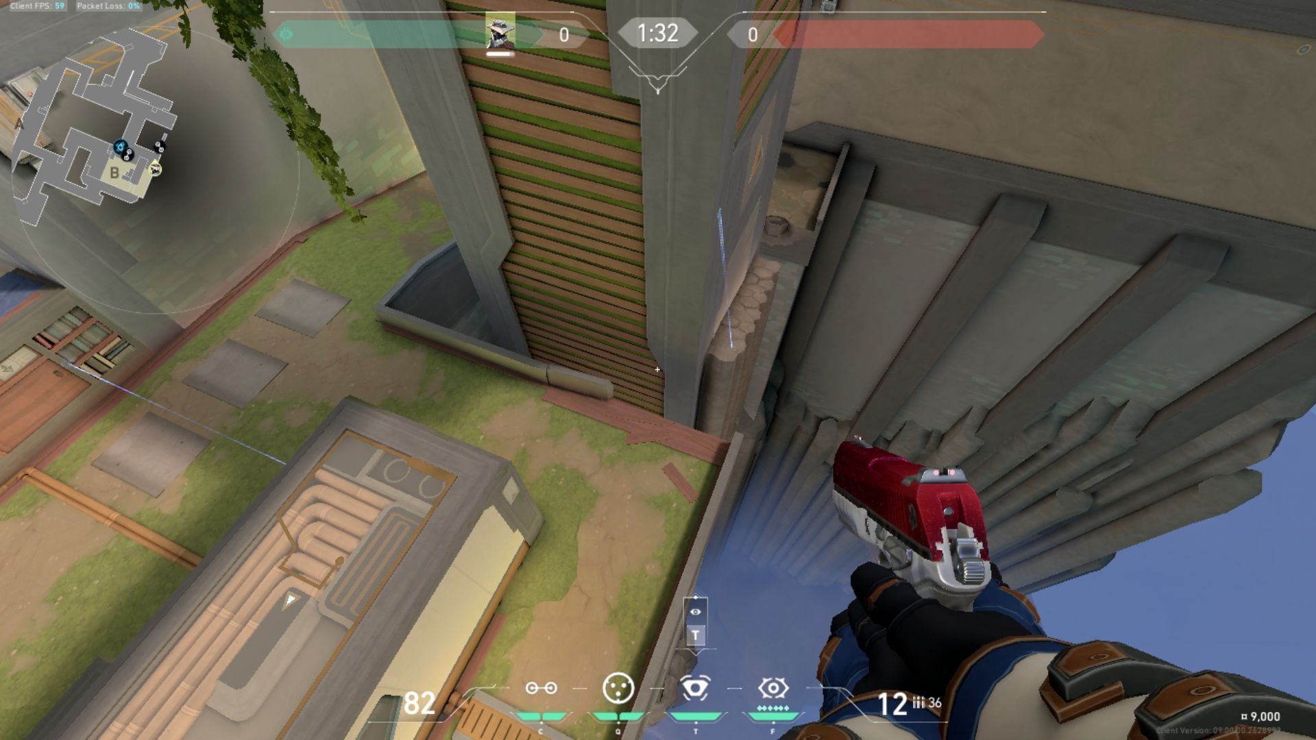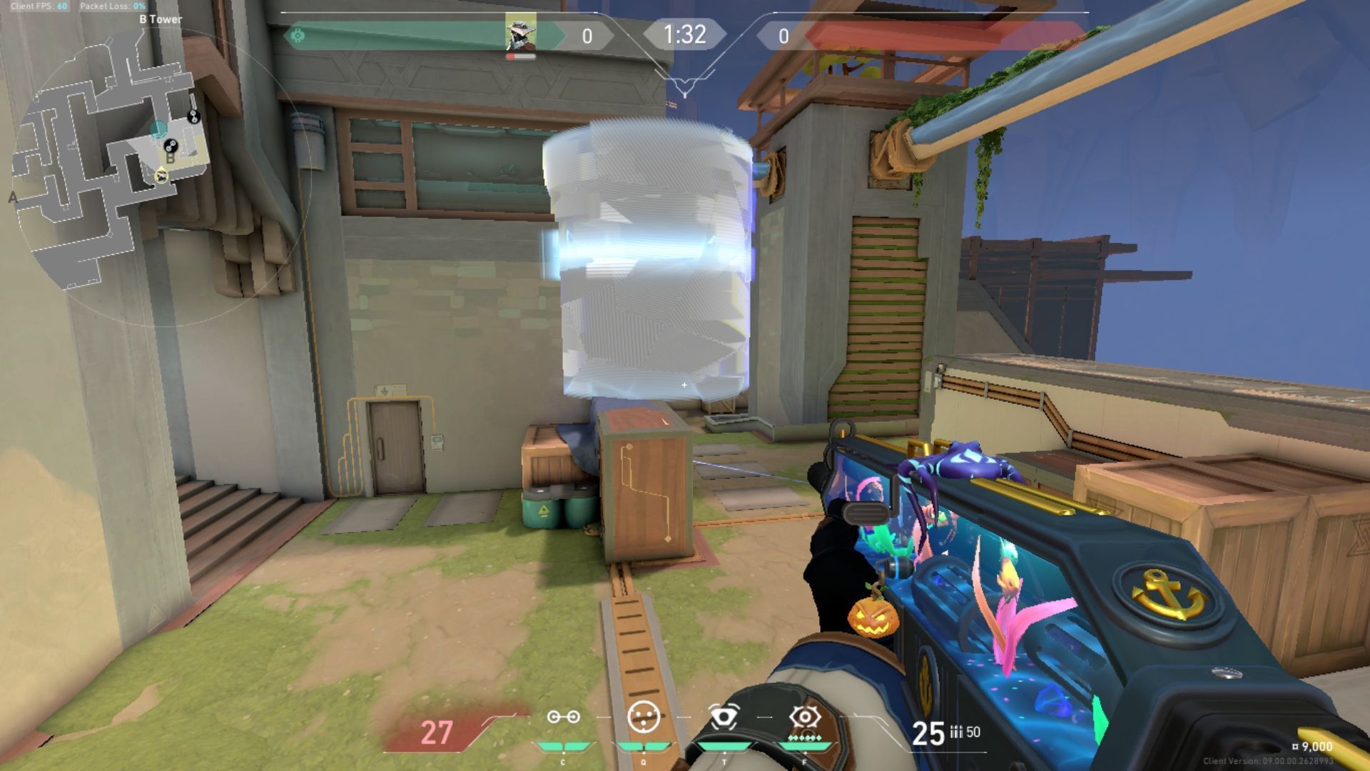 Always line up your crosshair in Valorant using the textures in the wall as cues. Next, release the Cyber Cage so it lands on the panel jutting out of the wall.