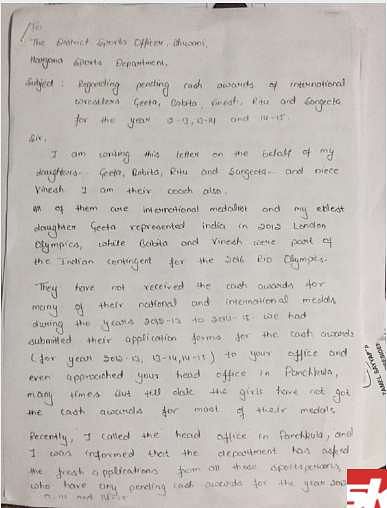 Annoyed at the state of things and a number of irregularities, former wrestler Mahabir Phogat took matters into his own hands and wrote a letter to the District Sports Officer. Sportskeeda read the three-page long letter where the following was mentioned: