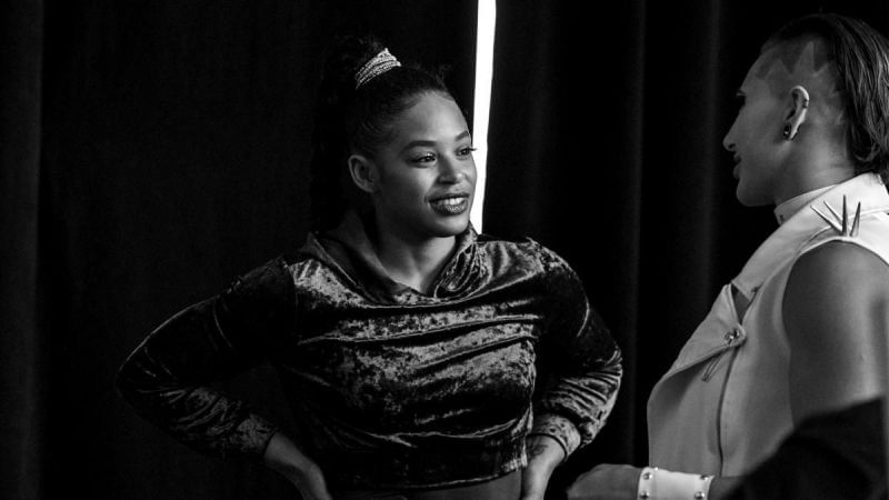 In the above shot, Bianca Belair can be seen having a conversation with the former NXT Women's Champion, Rhea Ripley. Bianca had a great showing at the 2020 Women's Royal Rumble match earlier this year, where she went on to have eight eliminations on her name. At WrestleMania, she made a surprise appearance after the Street Profits' successful title defense against Angel Garza and Austin Theory. She went on to attack Zelina Vega and looks set to have a rivalry with her in the post-Mania season.