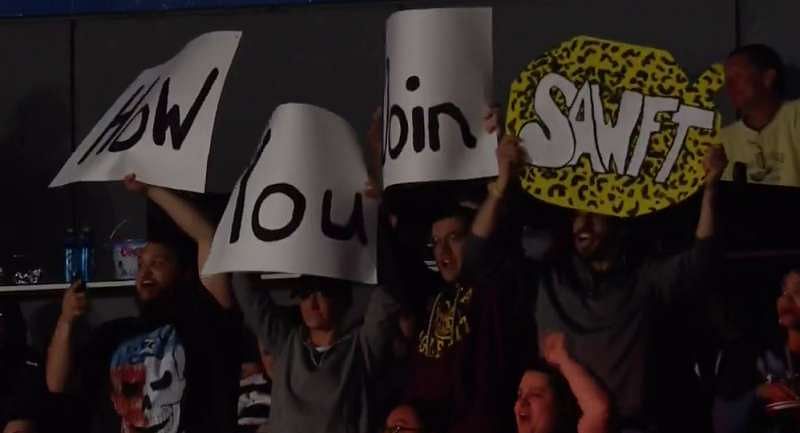 Check out the sign in front of the “YES!” sign. What do those 4 letters spell? Is that an “X-Pac” sign? In 2016? Why? Sean ‘X-Pac’ Waltman hasn’t been relevant, in a wrestling sense, since the dying days of the Attitude Era. I have no idea why this fan decided to dedicate his fan to X-Pac, maybe it was ironic?