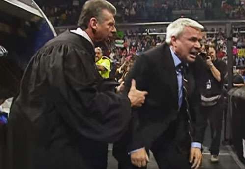 In 1998, Shawn Michaels was fired as the commissioner of Raw. Shawn started to walk away from Vince after he was fired, but turned back around a nailed Vince with some sweet chin music.