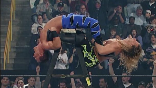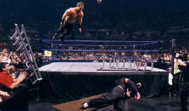 Among the many tables broken, swung chair shots and ladder high spots, perhaps the most notable moment is when Chris Benoit attempted to deliver a diving headbutt from the top rope to the outside as Matt Hardy lay on a table.