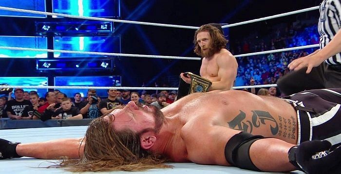 After coming back from a supposed career-ending injury, Bryan got into a feud with AJ Styles. The two faced off for AJ's WWE Title at the go home show of SmackDown Live before Survivor Series. During the closing moments of the match, Bryan saw an opportunity open up after the referee got distracted.