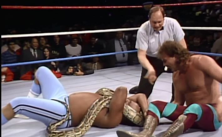 Roberts burst onto the WWF scene at WrestleMania 2, making his PPV debut against the jobber George Wells. Not only was he a hugely intriguing and charismatic persona in his own right, but his association with Damien the snake made him all the more fascinating, especially for younger viewers.