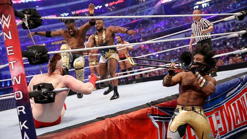 This highly colorful move involves 2 of the members taking turns to stomp a hole on an opponent at the turnbuckle, while Xavier Woods accentuates every shot with a blast from his trombone. A move that is as effective as it is hilarious.