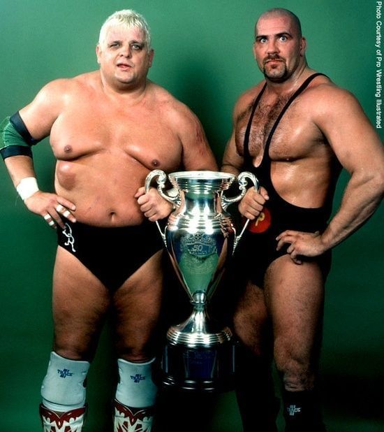 At first, the two were enemies, but after Koloff turned face they became unlikely allies, and then an even more unlikely tag team. The Super Powers never captured the elusive NWA world tag team titles, but they did win the Jim Crockett Sr. memorial tag tournament.