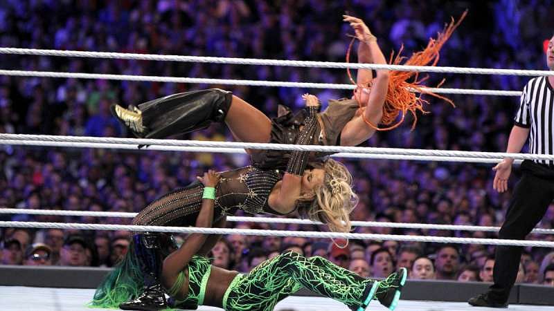 Nattie had Becky Lynch set for a German Suplex near the ropes when Naomi came in from the outside. She would flip over both women and deliver a Double Sunset Flip. It was a really unique move worth mentioning on this list.