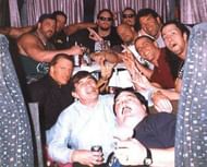 In the above picture, we can see some big names that are apparently busy partying. Seeing the likes of Shawn Michaels and Undertaker back in the good old days makes it special and there should be a special mention for Paul Bearer who has a gold face on for the picture.