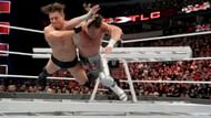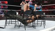 There were two spots in the match that stood out above others. The first saw AJ Styles laid out on one commentator table giving Ambrose the opportunity to set up a ladder on top of an adjacent commentator table and deliver a diving elbow drop to the ‘Phenomenal One’.