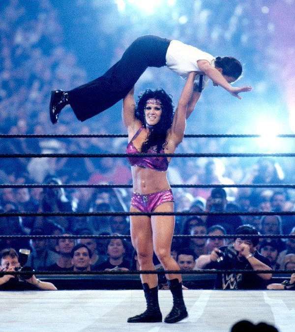 Around 1995, Chyna decided to make something out of her fitness background (she was a regular competitor) and joined Killer Kowalski’s wrestling school in Massachusetts. In 1996, she met Triple H and Shawn Michaels at a wrestling show.