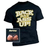 So let's take a look at this thing - the front reads "BACK DAT ASS UP!". Okay, that I can sort of let slide. After all, the rapper Juvenile had released a song of the same title around this time, so the phrase was pretty widely popular. It wasn't charming, but it was topical. And lord knows that the WWE often capitalizes (often poorly) on what's topical.