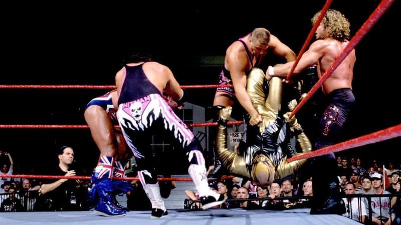Though WWE has always specialized in big singles matches rather than multi-man tags, the compelling USA vs. Canada storyline stemming from Bret Hart's 1997 heel turn and formation of the Hart Foundation stable made a gang war inevitable.