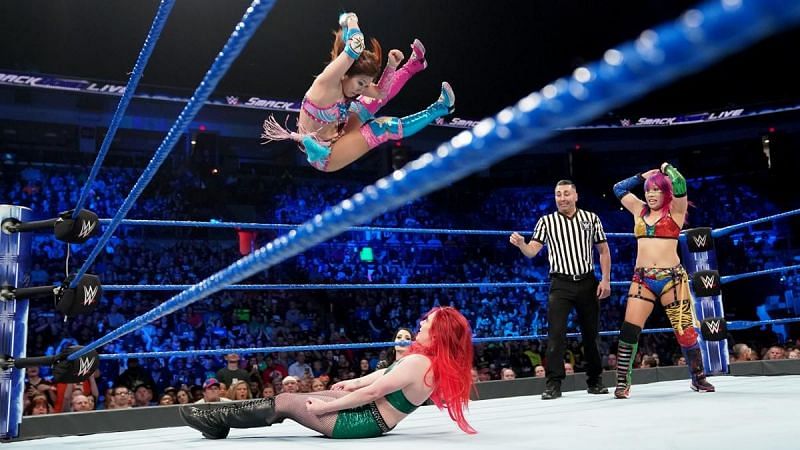 Surprisingly, the Hardy Boyz relinquished the SmackDown Tag Team Titles as Jeff Hardy got injured, while Kairi Sane and Asuka defeated two local competitors. Following the announcement of participants from RAW for the two ladder matches at Money in the Bank, the blue brand announced male and female participants for the two ladder matches. Finn Balor, Ali, Rany Orton and Andrade will be part of the Men's Money in the Bank Ladder match while Mandy Rose, Bayley, Ember Moon and Carmella will be the four women to represent the blue brand in the Women's ladder match.