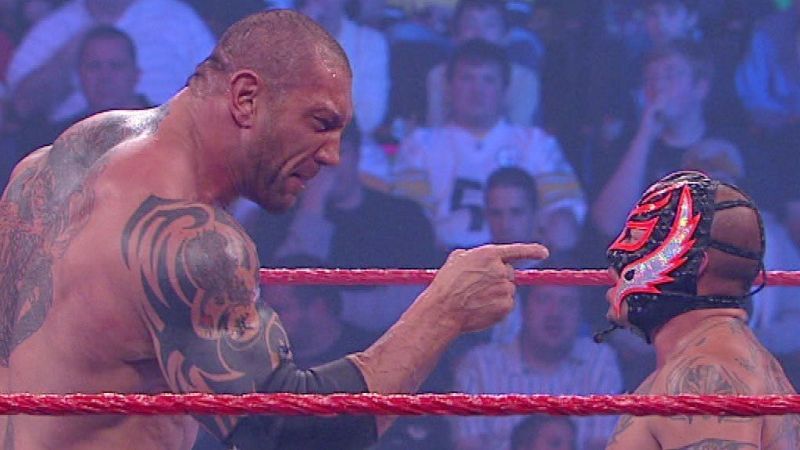 Rey Mysterio and Batista have had a storied history. However, their history with the SmackDown brand is stronger. Recently it was announced that Mysterio would return to ring action and Batista to the SmackDown Live 1000th episode. However, Batista has yet to confirm a full-time wrestling return. It seems likely though. Between 2002 and their respective departures from WWE. Mysterio and Batista have worked well together. Whether as a tag team or as enemies.
