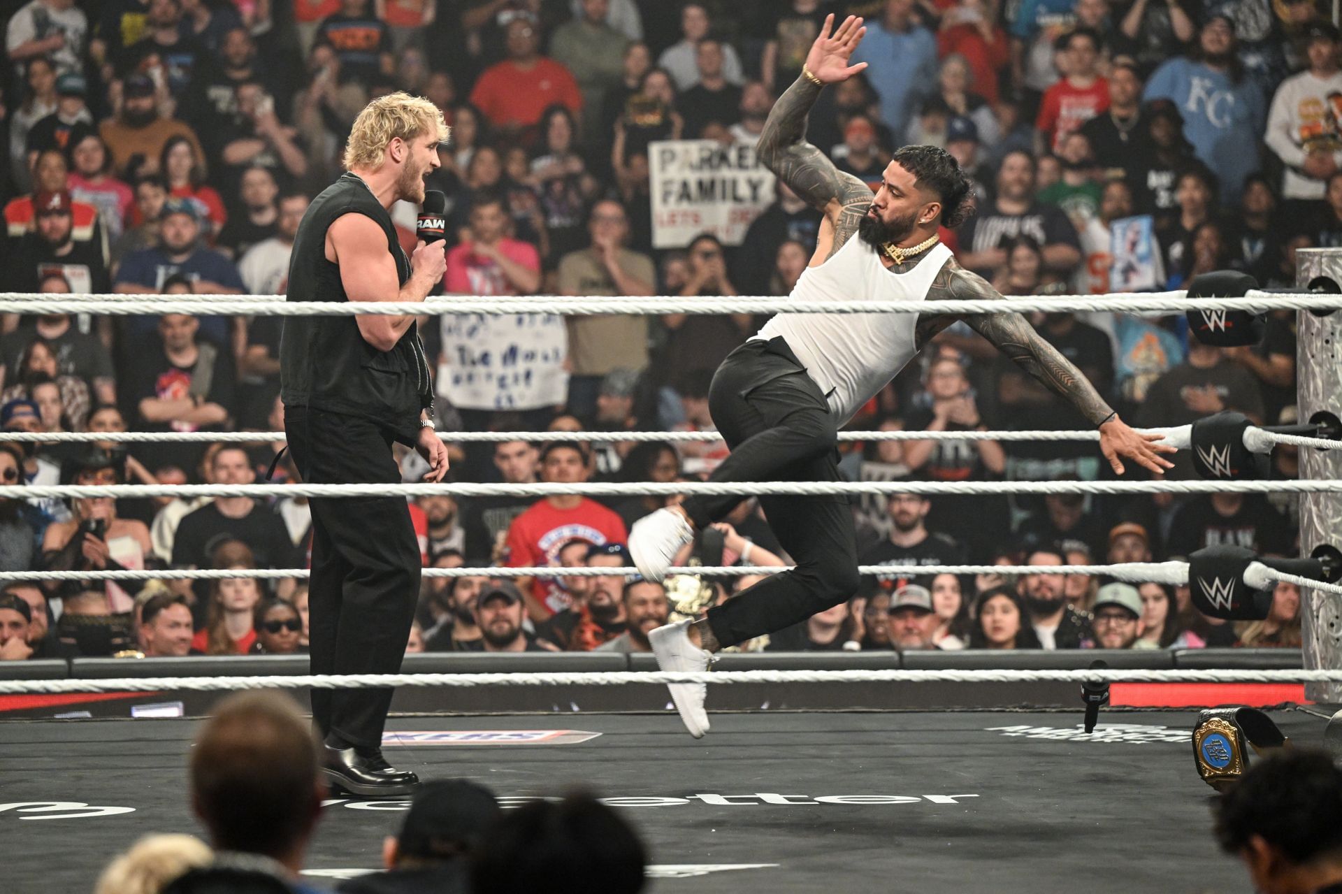 Jey Uso tapped out Gunther at The Show of Shows to capture the World Heavyweight Championship. Main Event Jey was confronted by Logan Paul last week on the red brand, and The Maverick vowed to capture the title from him. Uso responded by leveling Paul with a Superkick.