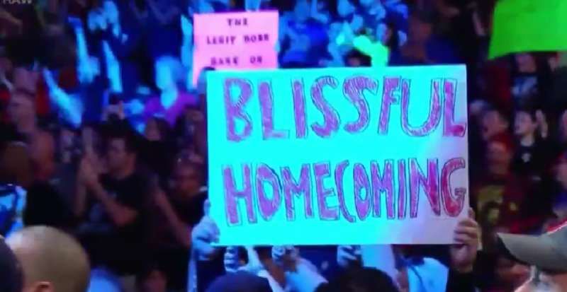 The fans popped at Bliss’ win and if this sign is anything to go buy, a large number of fans came down to RAW to cheer the hometown hero.