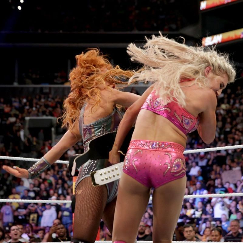 But, Becky returned the favour to Charlotte Flair. She slapped her and attacked her at ringside, showing her heel side. However, it was all fair. Charlotte just took Becky's moment from her. Even the crowd was in favour of Becky Lynch and chanted 'You Deserve It' while Becky was attacking Charlotte.