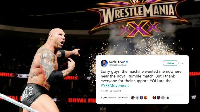 The winner: Batista returned to WWE in January 2014 as a baby face, despite the man behind the character wanting to play a heel. In his first match in almost four years, he outlasted 29 other men to win the Royal Rumble.
