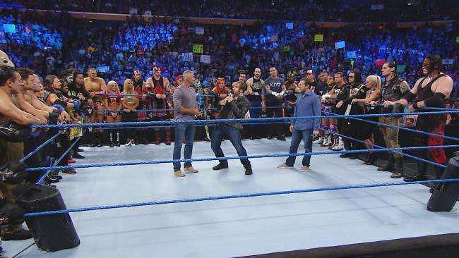 The entire Smackdown roster was out in the arena being addressed by the General Manager and Commissioner who were trying to find a new number one contender for their top title.