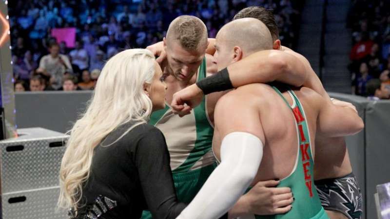 After Maryse had discussed her game plan with the team, it appears that Mikey had been tagged in by The Miz. Mikey got in the ring and actually managed to land some offence on the Miz before he was countered, as we can see below.