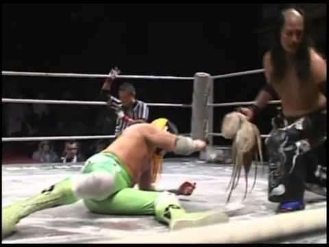 Hayabusa and an imposter Hayabusa were the unlucky competitors in this bout that could only be won by shoving a firecracker inside a wrestler’s posterior and lighting it. The true Hayabusa won while the loser hopefully went home and seriously evaluated his career choices up to that point in life.