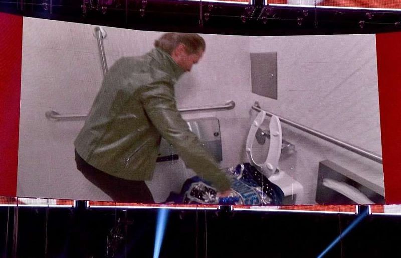 As Drake Maverick took Bobby Roode's robe and decided to pee on it, this obviously distracted Roode for some reason and the Tag Team Title match ended.