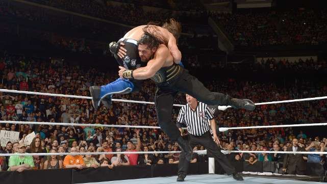 Opposite a fantastic performer in Punk, Reigns put in his first truly memorable singles match. Roman's power was on full display as he physically dominated "The Best In The World" for long periods before Punk eventually got back into things. As the match progressed, everything began to escalate and the crowd became highly engaged as Rollins and Ambrose got involved with the New Age Outlaws outside the ring, drawing Punk into diving out of the ring and onto Rollins.