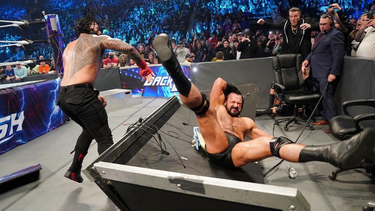 #5 On our list of ways in which Roman Reigns could lose, but remain champion at WWE Clash at the Castle: Have The Bloodline attack Drew McIntyre mid-match