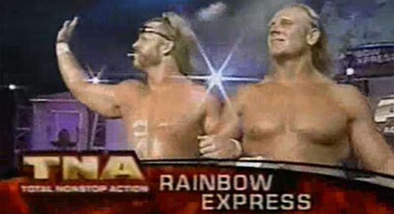 In a company littered with storylines that had poor taste, The Rainbow Express was a gem from TNA’s early years. Rainbow Express was the tag-team of Bruce and Lenny – a pair of overtly effeminate gay lovers who were managed by none other than Joel Gertner, who was better known by his ECW moniker – Studley Dudley.