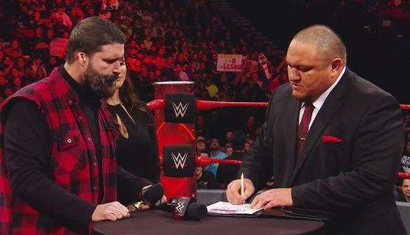 During a backstage segment on Sunday, we saw what could be the beginning of a new faction that has been rumoured for months now. Triple H has been reportedly putting together a new version of Evolution behind the scenes, with Samoa Joe and Kevin Owens clearly taking up two of the three vacant roles.
