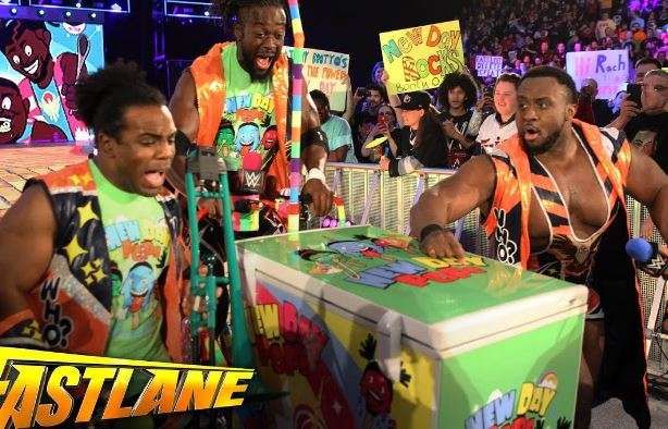 Because WWE felt the need to fill even more time on a pay per view that featured Jinder Mahal in an actual match, New Day came down to the ring and revealed their long-awaited ice cream merchandise in a segment that could've easily been saved for Raw.
