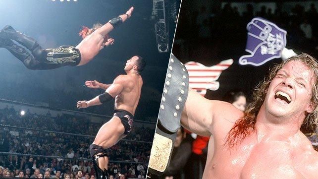 Speaking of winning two world championships at once, current IWGP Intercontinental Champion Chris Jericho did it first. The original Undisputed WWE Champion was crowned in a double-down effort by the GOAT himself at WWE Vengeance in 2001, where he first successfully defeated The Rock to win the WCW Championship.
