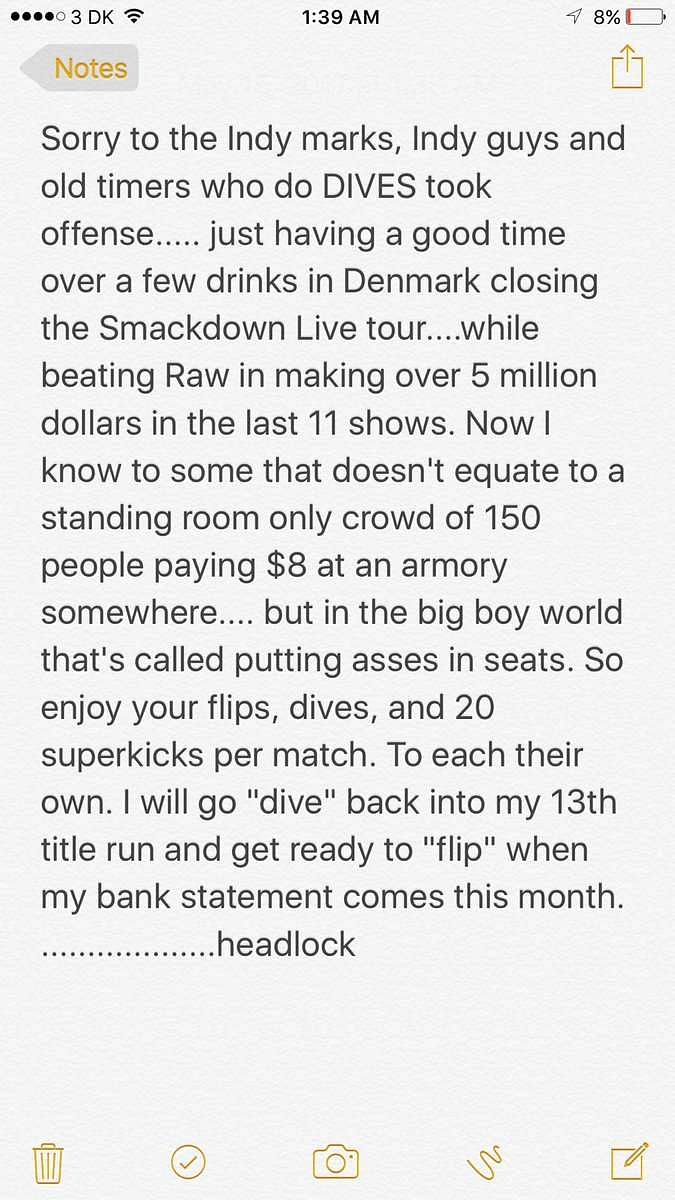 Orton followed up this tweet by issuing an ‘apology'. He ended the tweet with the word ‘headlock' as a counterpoint to ‘…dive,' which had ended many tweets posted in response to Rogers.