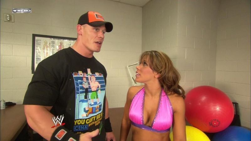 But during 2007 and 2008, Cena shared a lot of his on-screen time with Mickie James, which led to a real relationship between the two, much to the horror of Mickie’s fiancé at the time, Kenny Dykstra.