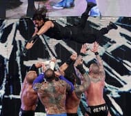 After Batista was written off television to allow him to attend public promotions for Guardians Of The Galaxy, Triple H said there was a ‘Plan B’. At the end of the night, when The SHIELD was in the ring, with Seth Rollins holding a chair, that Plan B unfolded. While Orton and Triple H watched on from the entrance ramp, Seth Rollins would proceed to attack Reigns with the chair, and then Ambrose.