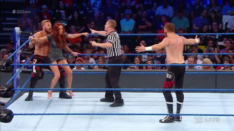 While he did win his match against an opponent of Sami Zayn’s talent and calibre, he did so in a rather cowardly fashion indeed. Yes, we understand that his gimmick is that of someone who hides behind his wife, but a stronger showing would have made a better impact, at least, in our opinion.