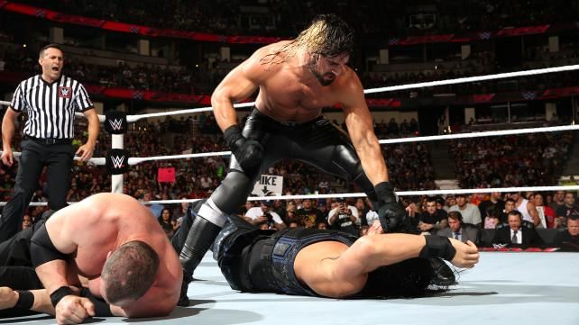 Here’s a video of Roman Reigns in a 2 on 1 handicap match against Rollins & Kane last night on Raw: