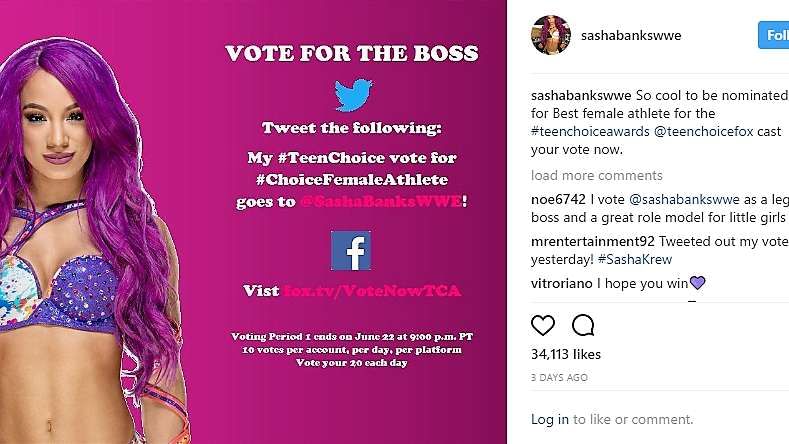 Sasha Banks has paved the path for so many women around the world, who want nothing but to pursue their dreams of excelling in the field of sports entertainment. It's a matter of genuine pride that she’s been nominated for the prestigious honour of ‘Best Female Athlete’ at the Teen Choice Awards. Vote for her! Time is running out.