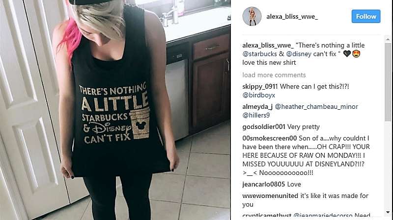 Coffee and cartoons are the ingredients for a blissful time. That's a very cute t-shirt on a very cute woman, isn’t it? It may not exactly go with Alexa’s heel persona, but hey, we promised to bring you the stars as they are, when the cameras are not rolling. This is just what we promised you. Moving on!