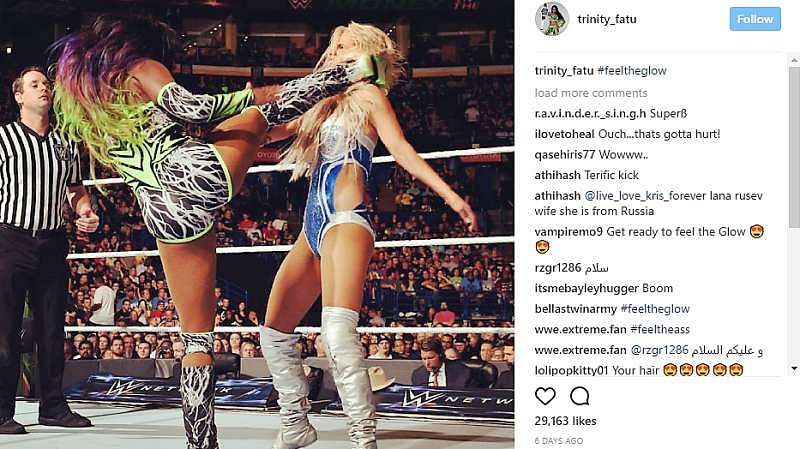 Naomi has really upped the ante with regard to athleticism, in WWE. Look just how high that kick is...right on Lana's beautiful face. She’s even managed to carry Lana through a moderately entertaining debut match. Can the two women deliver in the rematch this week?