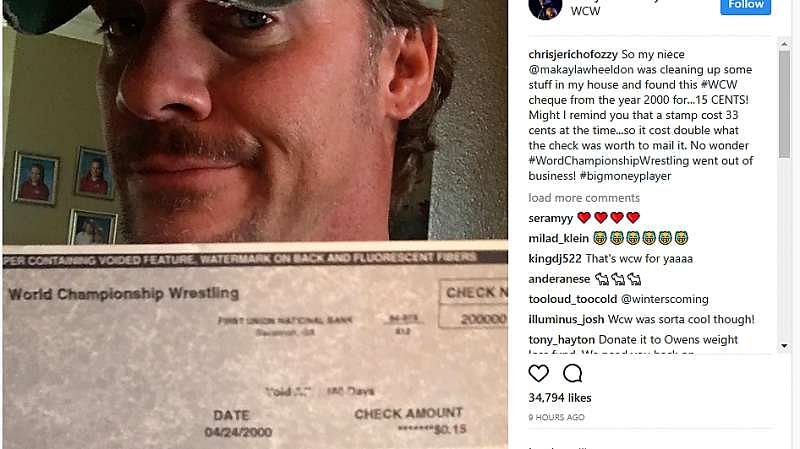 While World Championship Wrestling paid Hogan and Goldberg many millions of dollars, the undercard was often neglected. This is proved by the fact that this paycheck from the company is only for 15 cents.