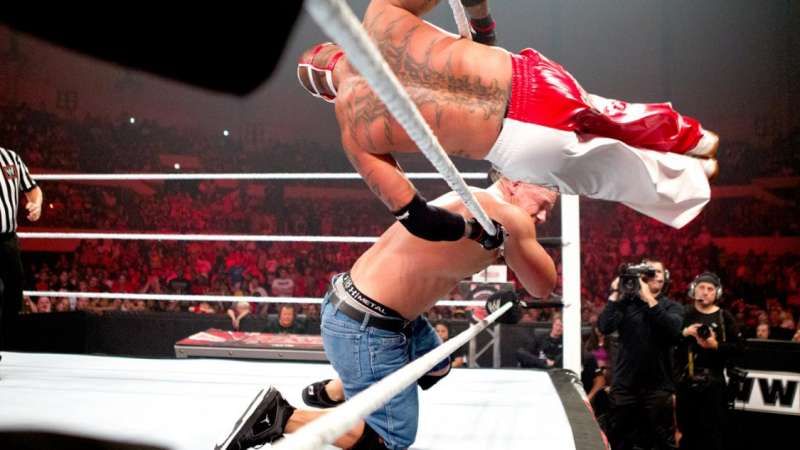 If this were a top 10 list, this match would have been number 6. John Cena and Rey Mysterio gave fans their money's worth and then some on this night. Mysterio had just won the title earlier in the night, only to have to defend it the very same night against Cena. It was a fantastic display of back and forth action, but in the end, John Cena walked away with the gold.