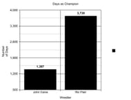 With a staggering 3,739 days as Champion, Naitch has nearly triple the days as Cena who clocks in with 1,397 and counting. Cena would need to be Champion for the next 2,342 days, or 6 years, 4 months and change to catch up. It’s safe to assume Cena won’t be catching up.